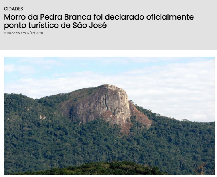 O Portal da Ilha noticiou na quinta-feira (17 de dezembro) que o cume da Pedra Branca agora é oficialmente ponto turístico de São José. A lei, de autoria dos vereadores Nardi Arruda (PSD) e Caê Martins (PDT), prevê parcerias entre instituições públicas e privadas para estimular a visitação e a conservação do local.