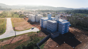 Em 2024, um passo importante foi dado com a entrega do Condomínio Vista Alegre, no bairro Forquilhas. A obra, que estava paralisada há mais de 10 anos, foi finalizada pela atual gestão e contempla 96 apartamentos populares com dois dormitórios, banheiro, sala, cozinha e área de serviço, divididos em quatro blocos com quatro andares cada. O investimento total foi de R$ 21 milhões, sendo R$ 8,6 milhões da Prefeitura e o restante oriundo do Governo Federal, por meio do Programa de Aceleração do Crescimento (PAC).