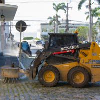 Equipe mecanizada intensifica limpeza no Centro Histórico de São José durante o Carnaval