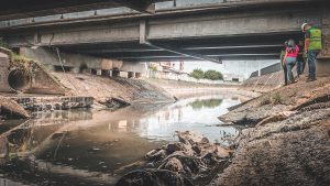 “Existe uma base de concreto sob as pontes que reduz significativamente a seção do rio, dificultando a vazão e fazendo com que, em dias de grandes chuvas, a água saia da calha e provoque alagamentos”, explicou. Segundo o secretário, a distância reduzida entre as calhas, aliada às estruturas de concreto utilizadas para proteção dos aterros, cria um gargalo hidráulico no trecho. “É um problema que só pode ser resolvido com um trabalho de engenharia, que permita a retirada ou adequação dessas estruturas para aumentar a vazão das águas do Rio Três Henriques”.